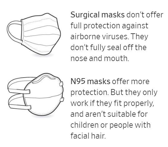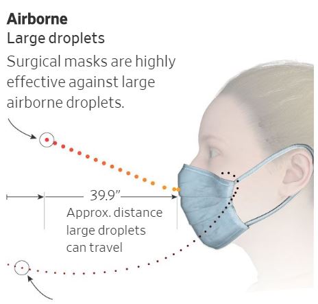 These traditional masks are less effective with small droplets, as they can travel farther and in unpredictable paths affected by wind and other gusts. The droplets can be inhaled around the sides of the masks.