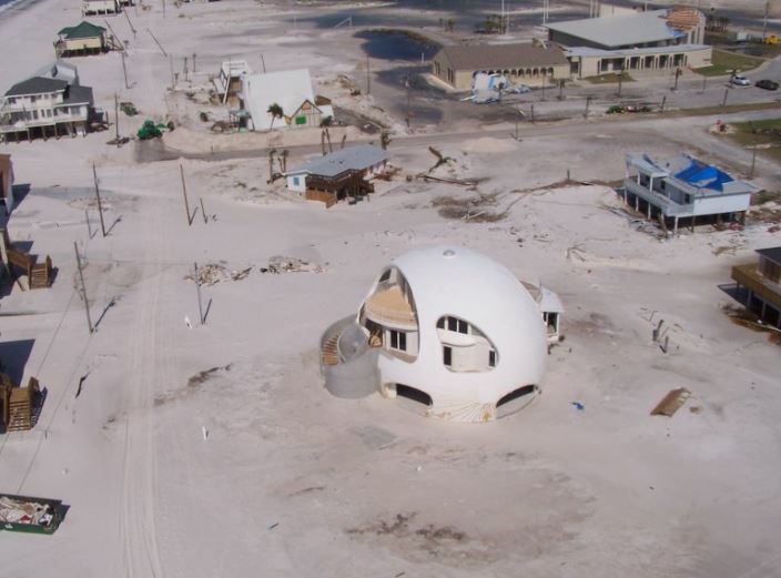 The monolithic dome, when finished, is earthquake, tornado and hurricane resistant (the US Federal Emergency Management Agency rates them as “near-absolute protection” from F5 tornadoes and Category 5 Hurricanes). Recently, a number of monolithic domes constructed using MDI techniques have survived major disasters: