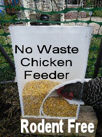 This chicken feeder is made of PVC plastic plumbing parts purchased at homedepot. But with OM, the elbow and a cover to keep the rain out would be made in one piece upon demand.