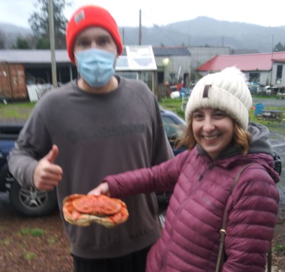 Fed 28, 2021, at Kids Free Fest, Amanda of Brownville, Oregon, went crabbing. She caught it from the shore at Siletz Bay in one hour. She says, “First time crabbing, and I caught my first crab.”