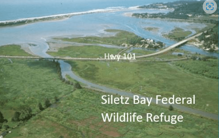 Waterfowl … The mix of freshwater, saltwater, and brackish estuary at Siletz Bay NWR draws multitudes of ducks and geese each year, as well as waders and divers, including herons, grebes, pelicans, and cormorants …. Click Here More about the Waterfowl.