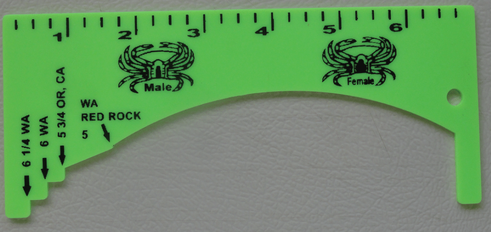 Crab Gage. Click the Add To Cart Button below to order the Oregon, Washington, and California Crab Gage for $3.00 plus a $3.30 shipping and handling charge. Buy half a dozen crab gages to reduce the cost of the shipping and handling charge. The shipping and handling charge applies to the first crab gage only.