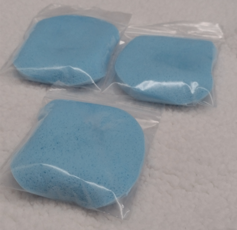A Sponge is soaked in crab-attractant oil and sealed in a plastic bag. After the sponge has consumed the oil, it can be placed over the top opening of the Load-n-Go Bait Barrel©.