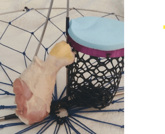 With the big end of the chicken drumstick, press firmly in the center of the sponge to insert the sponge and big end of the drumstick into the Load-n-Go bag© Bait Barrel.